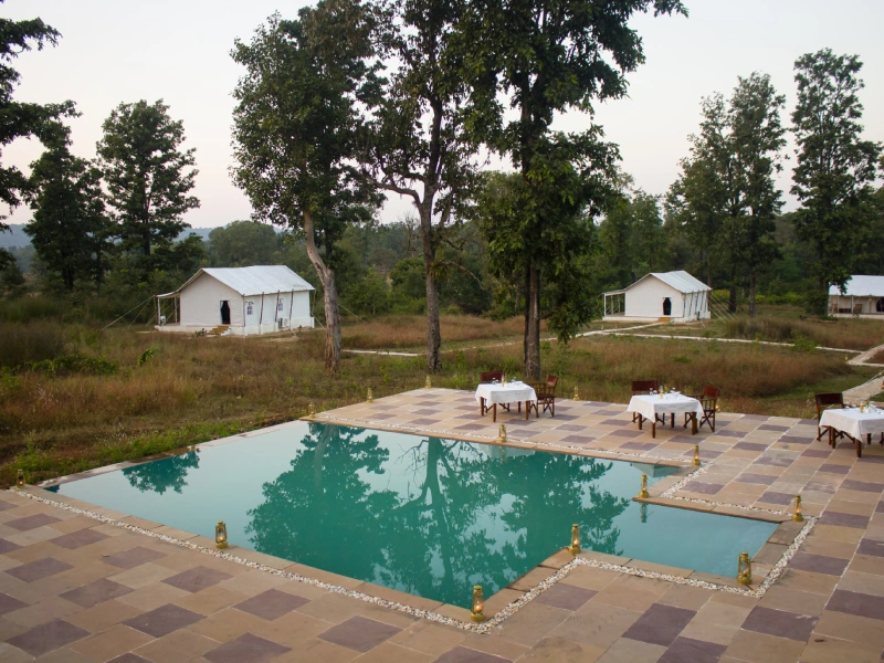 At Umaria Safari Camp, conservation is not just a value — it is the core of our identity. Nestled in the heart of the Kanha-Pench wildlife corridor, our eco-luxury safari camp was designed with deep respect for the land and its ecosystems. From the very beginning, we committed to low-impact development. Not a single tree was cut during construction, and every structure was positioned to preserve the natural contours and life of the forest.