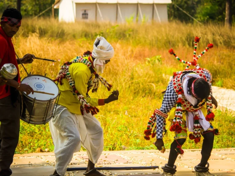 Hosting performances by local folk dance troupes, creating a vibrant introduction to Central India’s living traditions