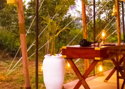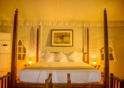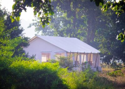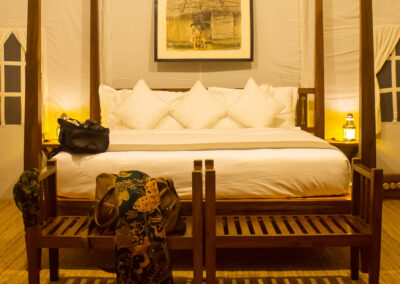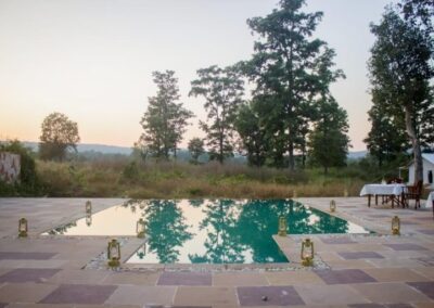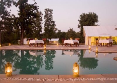 TheCamp provides the romance of safari under canvas tents, the style of the bygone era of the twenties, while at the same time providing the amenities required by today’s modern world travellers. The Camp has a Lounge cum dining tent and an amazing pool where one can relax after a safari drive and the pool deck becomes an intimate dining venue for family or honeymooners on one of the evenings while staying in the Camp.