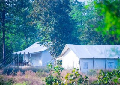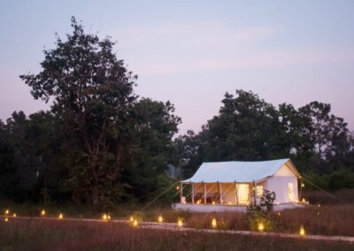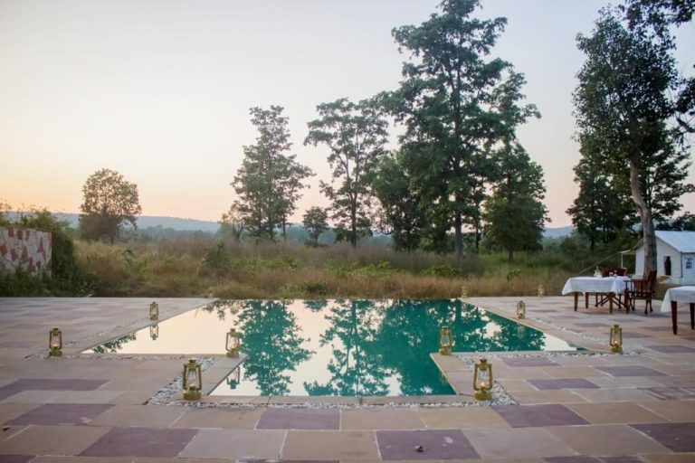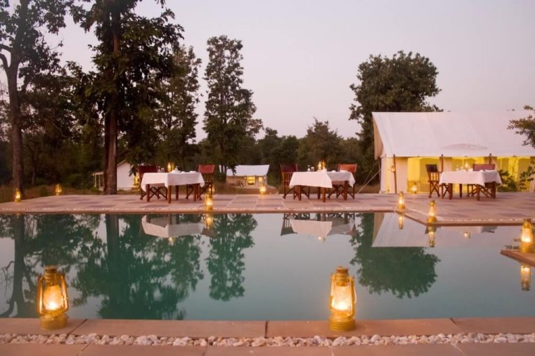 This intimate safari Camp is located on the periphery of Kanha Tiger reserve overlooking the Kanha – Pench Corridor. The Camp recreates a vision of safari inspired by canvas with colonial influences of the officers of the erstwhile British Raj on central Indian Safari. The tents arewarm and spacious, with luxurious interiors and colonial era inspired furniture.